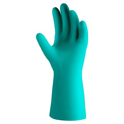 Защитные перчатки из нитрила. Внутри флокированы 100% хлопком. Обладают высокой устойчивостью к водорастворимым неорганическим кислотам (до 80%), щелочам (до 40%), солям, спиртам, растворителям.